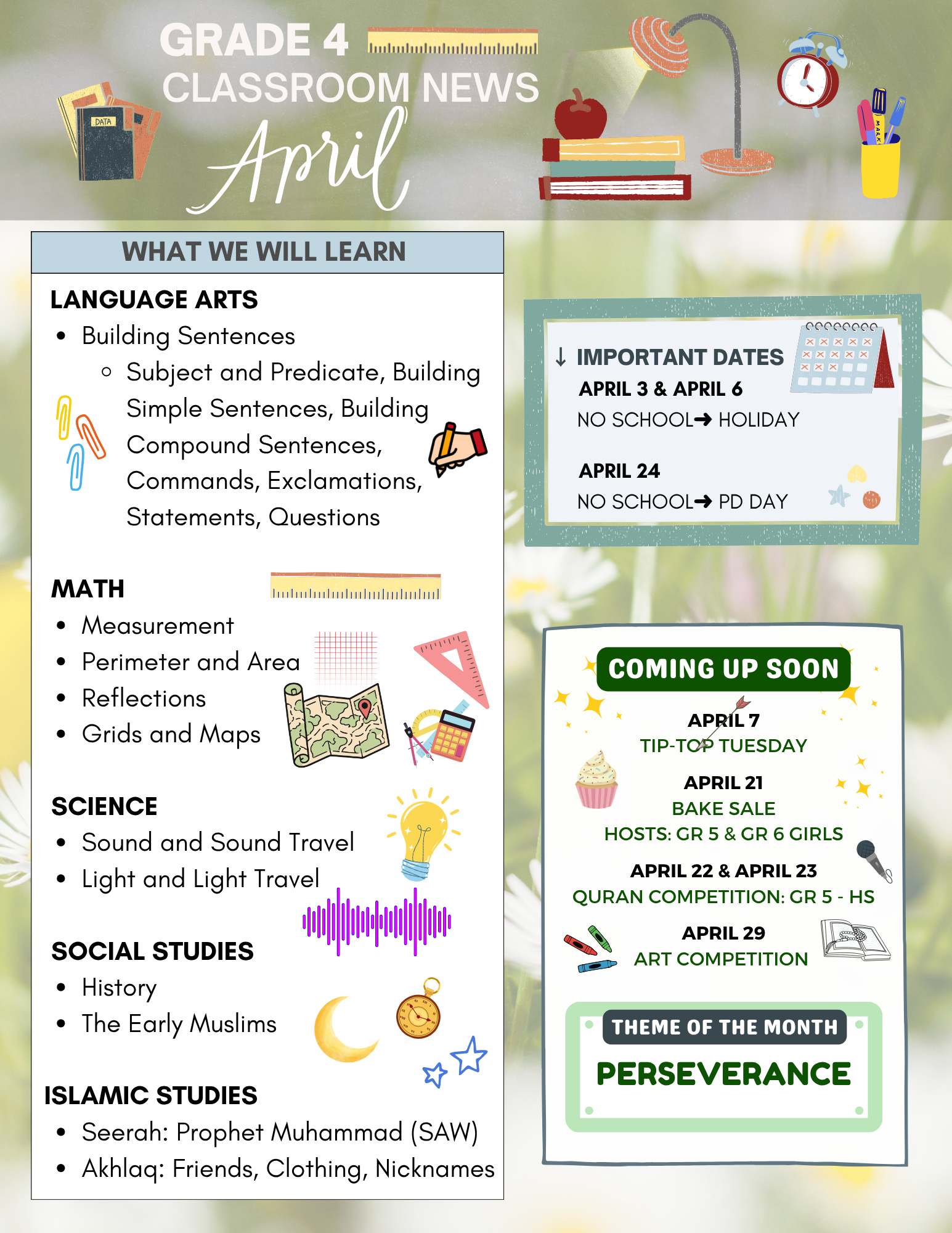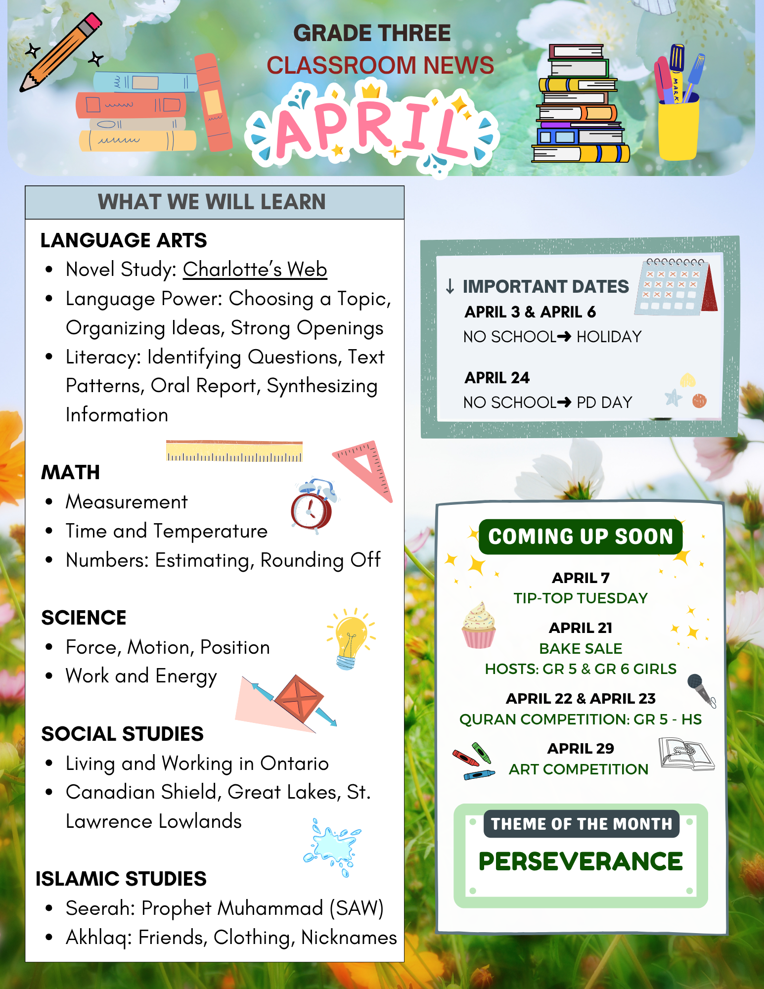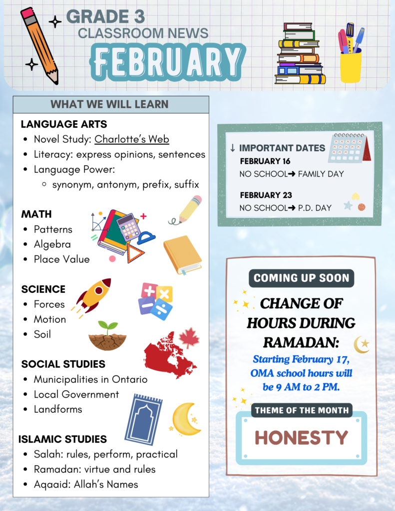 Each beautifully designed newsletter offers a snapshot of school life—showcasing student achievements, classroom activities, special events, and the dedication of our exceptional teachers. They reflect our commitment to creating a fun, organized, and nurturing learning environment where students thrive academically and personally.