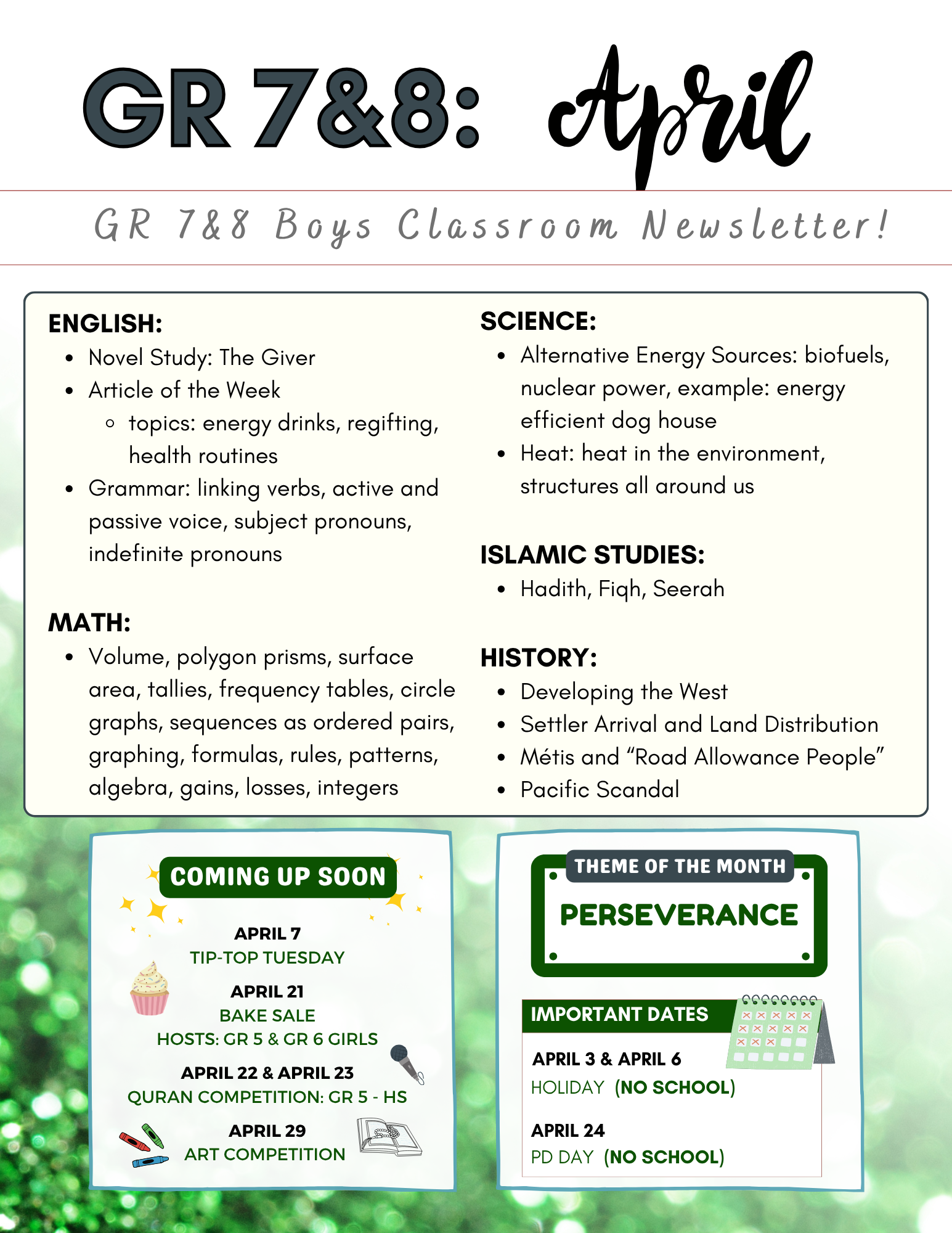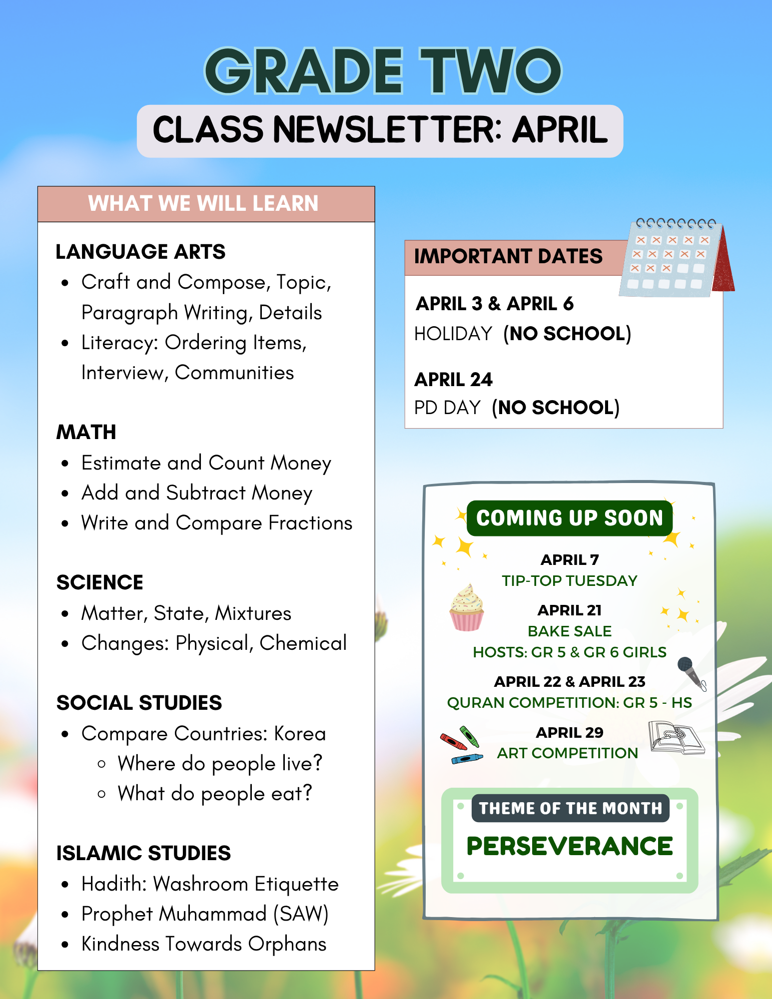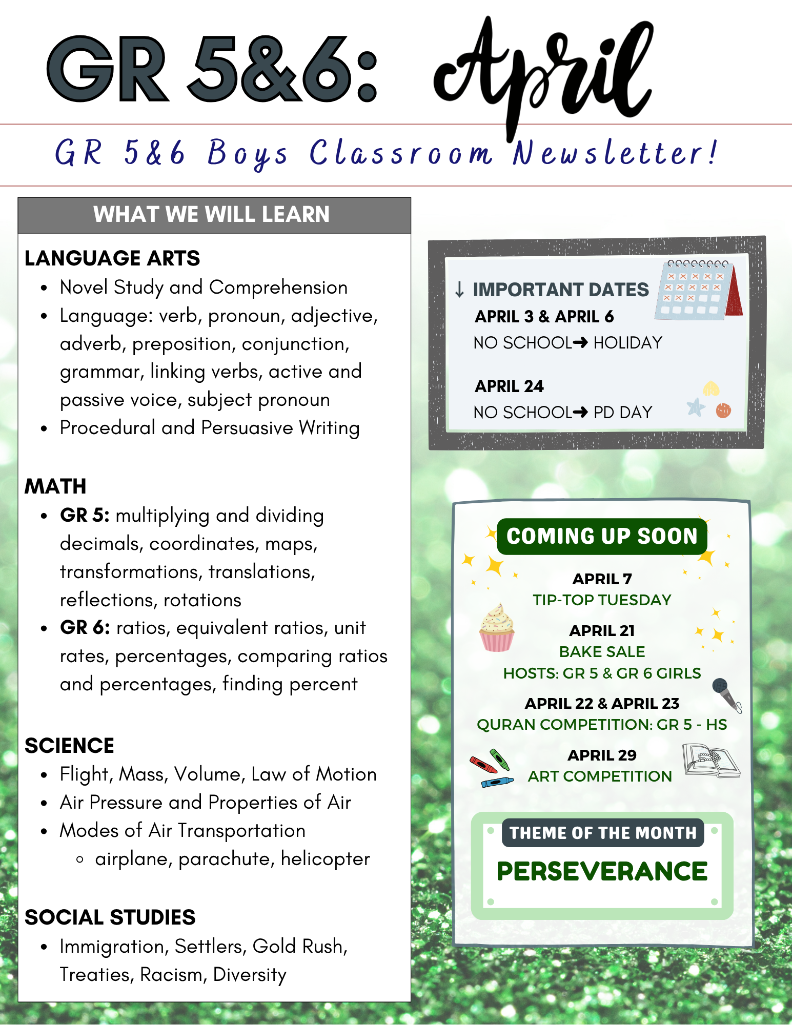 Each beautifully designed newsletter offers a snapshot of school life—showcasing student achievements, classroom activities, special events, and the dedication of our exceptional teachers. They reflect our commitment to creating a fun, organized, and nurturing learning environment where students thrive academically and personally.